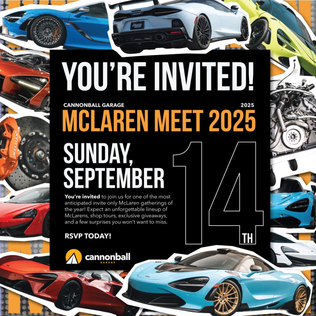 We’re excited to invite you to McLaren Meet 2025 — a day dedicated to McLarens and the community that drives them. Come experience a stunning lineup of McLarens, connect with fellow owners and enthusiasts, and get an exclusive look behind the scenes at Cannonball Garage.
